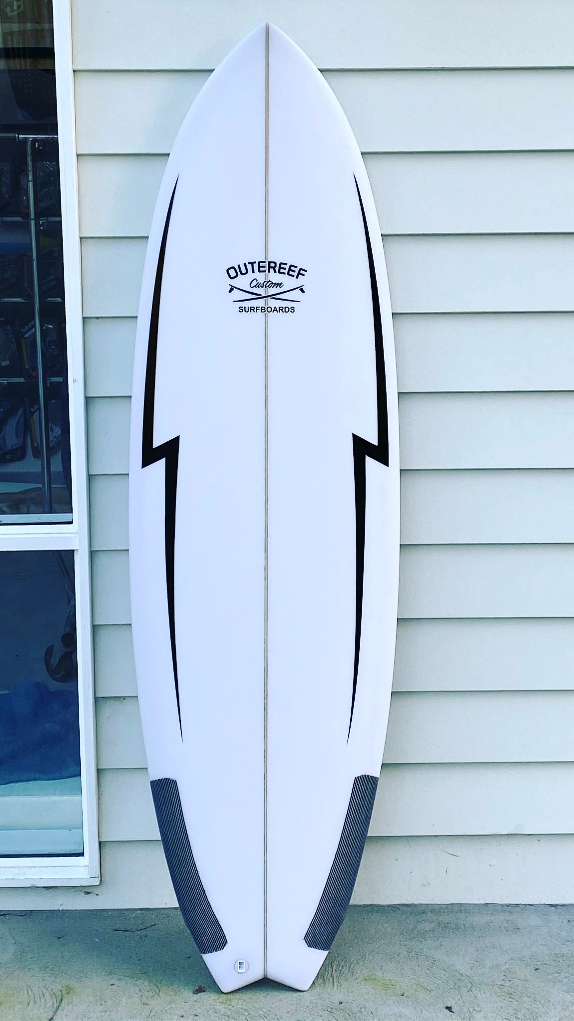 The Groveller model is another high performance small to medium wave option. The board has more volume than our regular performance boards allowing you to paddle against the running rips and keep your wave count up. They can be surfed 2+ inches shorter than your regular performance board. It has a flatter rocker with a super deep concave making it a very fast option. This is also a great option for heavier surfer. It will fly through sections and will also perform well in the pocket or barrel. Usually comes with a swallow tail or wide squash tail. Available in both FCS or FUTURES plug options.